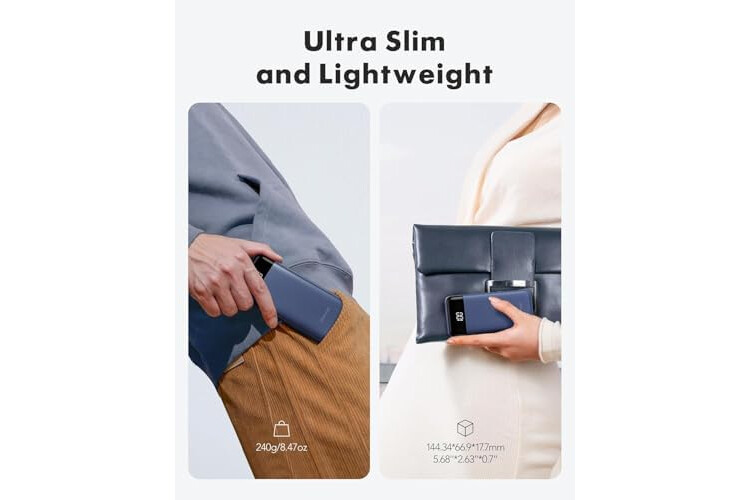 🔋【Super Slim, Accurate Percentage of Remaining Juice】 Slim 10000 power bank, its dimmension is 5.68''x2.63''x0.69'', and weigh only 0.5...