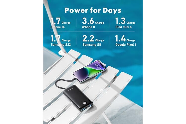 🔋【Super Slim, Accurate Percentage of Remaining Juice】 Slim 10000 power bank, its dimmension is 5.68''x2.63''x0.69'', and weigh only 0.5...