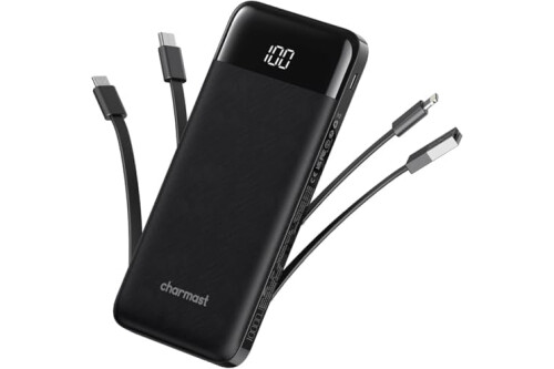 charmast Portable Charger with Built in Cables, Power Bank with Cords Wires, Slim 10000mAh Travel Battery Pack 6 Outputs 3 Inputs 3A Fast Charging for Samsung Google Pixel LG Moto iPhone iPad