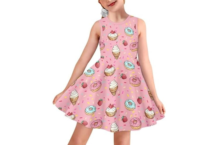 Ice Cream Sleeveless Summer Dress for Girls Size 5-6 Pink Candy Cute Clothes Kids Twirl Swing School Party Sundress Tank