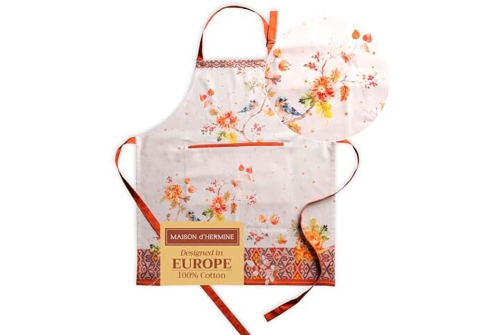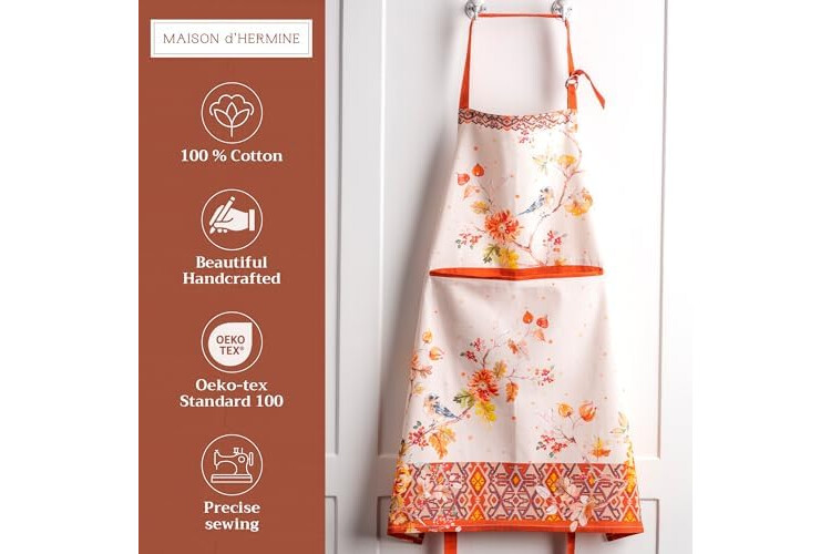 Maison d' Hermine 100% Cotton Apron for women with Pocket Kitchen Chef Fall Apron for Men Cooking Gardening Server Waitress Maid (Kelim - Prairie)