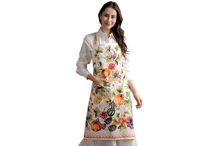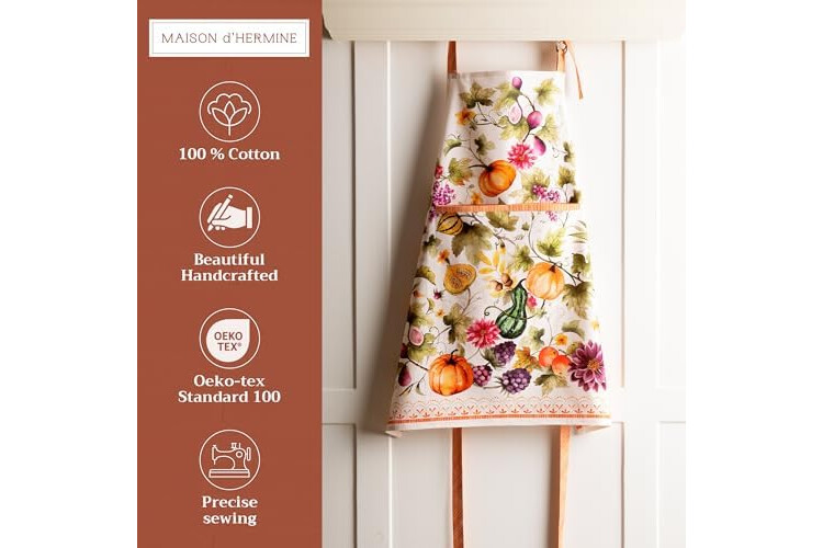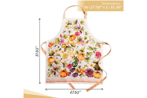 Maison d' Hermine 100% Cotton Apron for women with Pocket Kitchen Chef Fall Apron for Men Cooking Gardening Server Waitress Maid (Pumpkin Garden - Cloudy Cream)