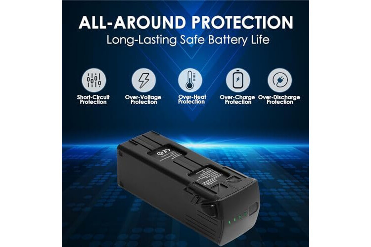 INTELLIGENT PROTECTIONS - Built-in smart battery management system, able to monitor the capacity and cell status in real time, delivering a stable energy output to escort every flight. Multiple protections against over-charge, over-discharge, over-voltage, over-current, and over-heat, to guarantee the battery’s safety and longevity.