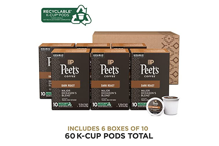 Contains six (6) Boxes of 10 Peet's Major Dickason's Blend Dark Roast Coffee Keurig K-Cup Pods (60 K-Cup Pods Total - 100% Arabica Coffee