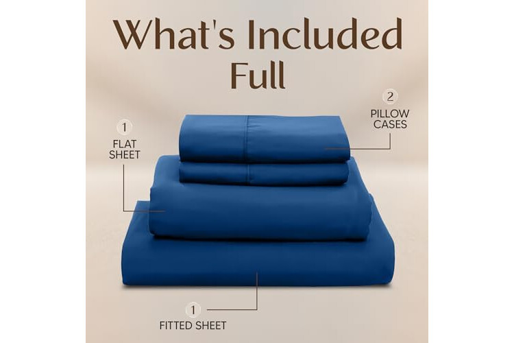 Full Sheet Set – 4-piece soft sheets full size includes flat sheet (81" x 96"), fitted sheet (54" x 75") with 15" deep pocket and 2 pillowcases (20" x 30"). Soft, cooling, and durable full size sheets set. Ideal sheets for full size bed set