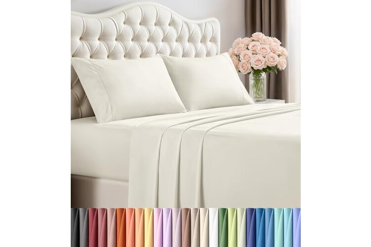 Utopia Bedding King Size Sheet Set – 4 Piece Bed Sheets, Soft and Breathable Microfiber, Includes 1 Fitted Sheet, 1 Flat Sheet and 2 Pillowcases – Oeko-Tex (Ivory)