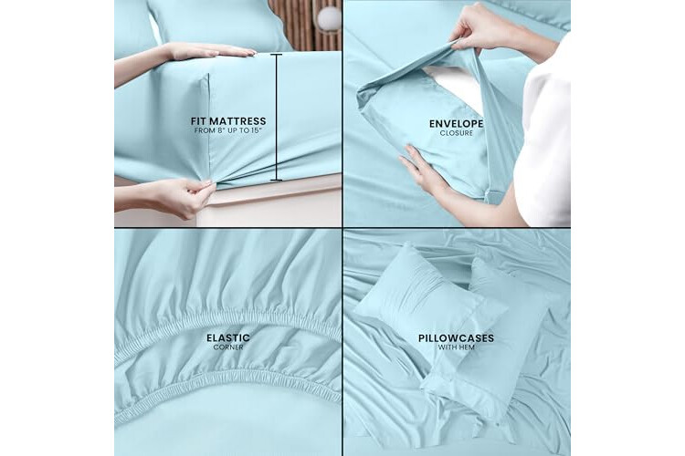 Utopia Bedding Full Sheet Set – 4 Piece Bed Sheets for Full Size Bed, Soft and Breathable Microfiber, Includes 1 Fitted Sheet, 1 Flat Sheet and 2 Pillowcases (Ice Blue)