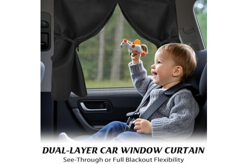 Ideal for Road Trips and Travel Comfort: Our double-layered car shades for back windows baby are ideal for your road trips. When you want to enjoy the view outside, simply roll up the blackout layer and tie it with the built-in rope. The r...