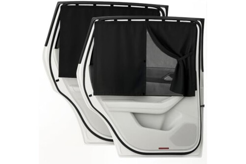Double-Layer Fabric for 99% Sun & UV Block: For REAR side windows ONLY! Our car window shades designed with two layers—one translucent mesh and one opaque blackout cloth. You can switch between full shading or partial shading modes as for privacy or visibility. This car sun shade effectively blocks 99% of sunlight, heat, and harmful UV rays, ensuring a cool and comfortable ride for you and your family.