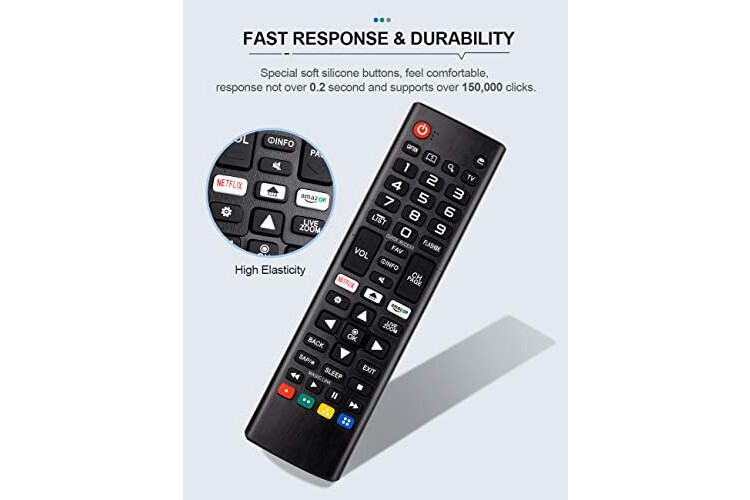 FAST RESPONSE&DURABILITY: Fastest response not over 0.2 second to your TV,buttons are made of silicone. You will feel it soft touch and anti-dusted. It supports over 150,000 clicks approved by a long term test.