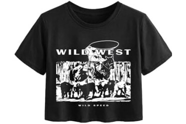 Avanova Women Vintage Cowboys Graphic Crop Top Oversized Short Sleeve Boxy Tee Shirt Black G X-Large