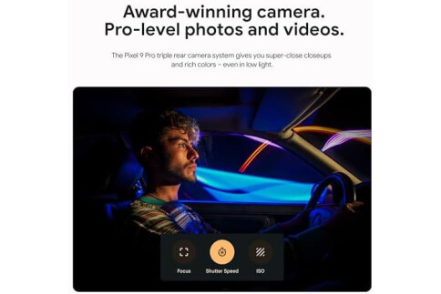 Google Pixel 9 Pro’s triple rear camera is the most powerful Pixel Camera yet; get high-quality video up to 20x with Super Res Zoom Video[2]; enhance your videos up to 8K with Video Boost; and take sharp videos in low light with Night Sight Video
