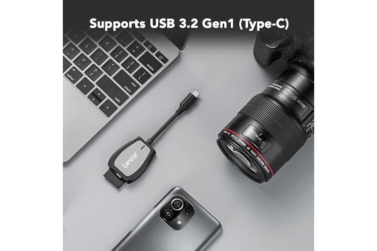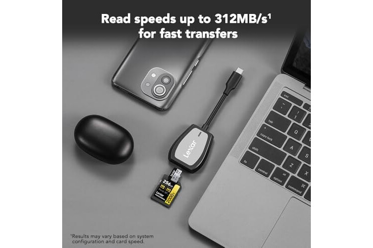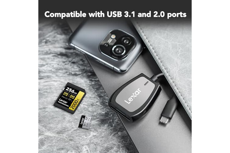 Lexar Professional USB 3.2 Type-C Dual-Slot Reader, Supports SD and microSD UHS-II Cards, Up To 312MB/s Read (LRW470U-RNHNU)