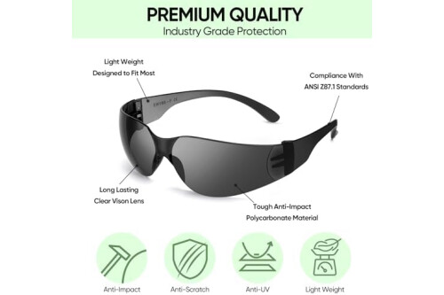TICONN Clear Safety Glasses for Men, Safety Goggles with Scratch Impact Resistant Meets ANSI Z87.1 Standard