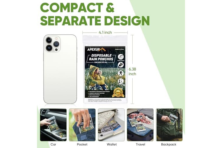 APEXUP Disposable Rain Ponchos for Adults, Emergency Rain Poncho for Camping Hiking Travelling