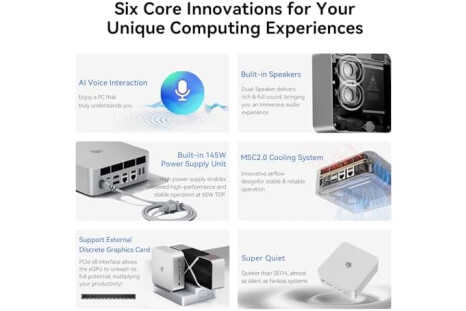 š”ćCompact & Rich InterfacećBeelink GTI14 Ultra 185H mini computer is easy to setup and small in size. Beelink GTI14 mini computers is equipped with 1x HDMI, 1*DP, 5*USB3.2, 1x USB-C(USB/DP1.4/TBT4/PD), 1x type-C(data), 2 x2.5G Gigabit Ethernet,1x SD slot (Suport SD4.0 ), 3.5mm Audio Jack, WiFi7, bluetooth 5.4.