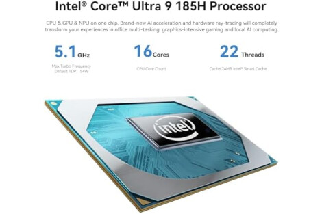 š”ćTower Performance & Powerful ProcessorćBeelink GTI14 Ultra Mini PC is pre-installed Win 11, comes with Intel Core Ultra 9 185H is a mobile processor with 16 cores, 22 threads, up to 5.1GHz. The Beelink GTI14 mini pc can be used for video and photo editing, Office tasks, 4K video viewing, high-end games, and virtualization work, and others heavy applications.