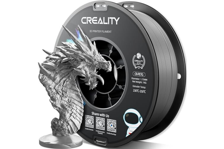 Official Creality PETG 3D Printer Filament 1.75mm 1KG (2.2lbs), High Precision, Strong Toughness, Odorless, Better Flow, Moistureproof 3D Printing CR PETG Filament, Grey
