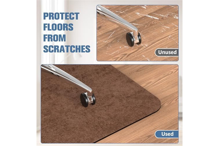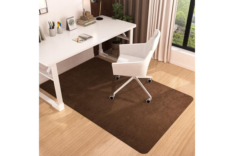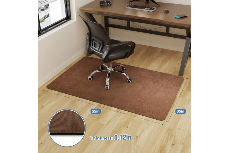 Placoot Office Chair Mat for Hardwood Floor, 55"x35" Corduroy Surface Computer Chair Mat, Desk Chair Mat, Large Anti-Slip Rubber Bottom Floor Protector for Home Office Brown