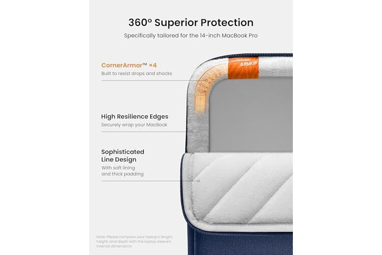 • Military-Grade Protection: To combat the toughest situations: from falls to shocks to vibrations, tomtoc proposed the concept of 360 protection and designed the laptop sleeve with CornerArmor Technology, high resilience edges, and high-density soft padding. It passed the Military-Standard-Drop-Test while also maintaining a sleek design