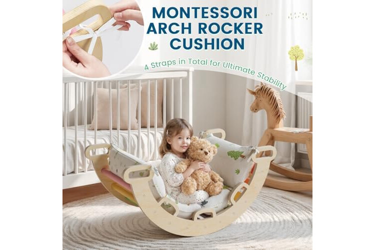 Multi-functional: The Nostalgia and Aurora Pikler cushion exhibits remarkable versatility, doubling as a cushion for climbing arch, a pillow for Montessori Philosophy rocker, and a floor lounger pillow, thus proving ideal for occasions like naps, sleepovers, and reading sessions. (Note: This Montessori Philosophy arch cushion is only suitable for BlueWood Ladder Arch for Climbing )