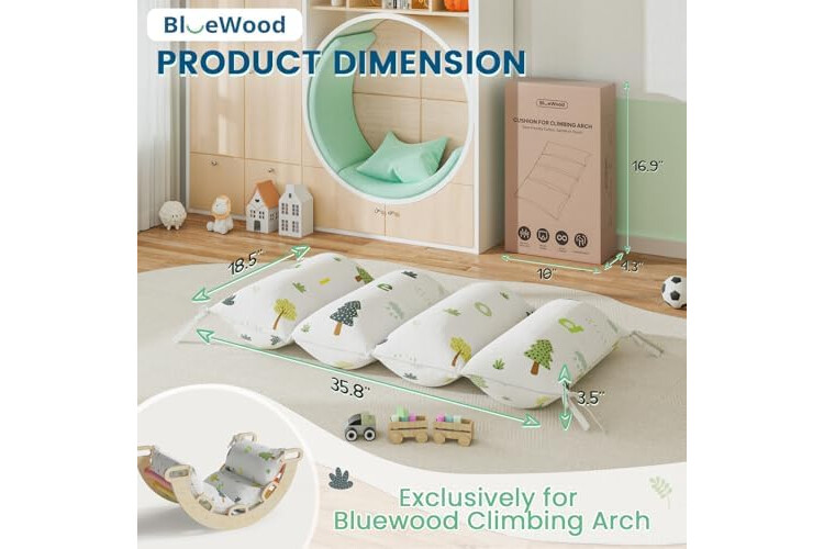 BlueWood Cushion for Climbing Arch, Montessori Philosophy Soft and Non-Slip Pillow for Kids, Pikler Cushion for Reading, Playing, Games, Parties (Forest)