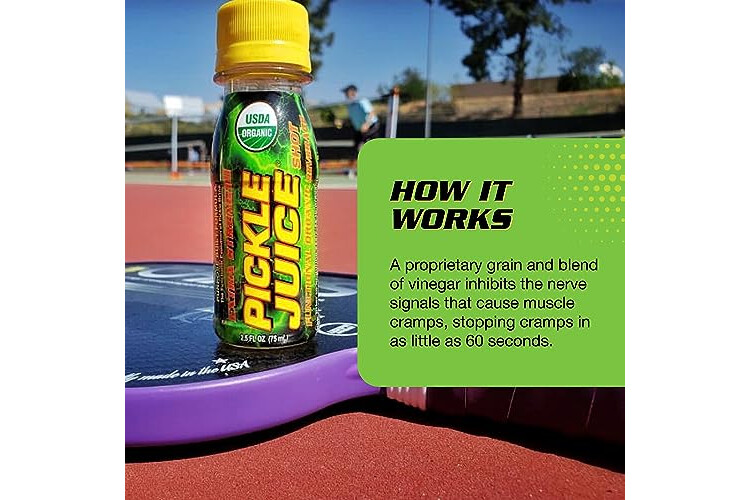 STOPS CRAMPS IN 60 SECONDS: Unlike pickle brine, Pickle Juice uses a proprietary grain and blend of vinegar which inhibits the nerve signals that cause muscle cramps, stopping cramps in as little as 60 seconds - keeping you on the road to victory