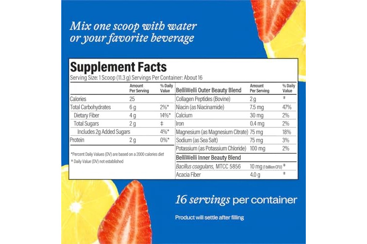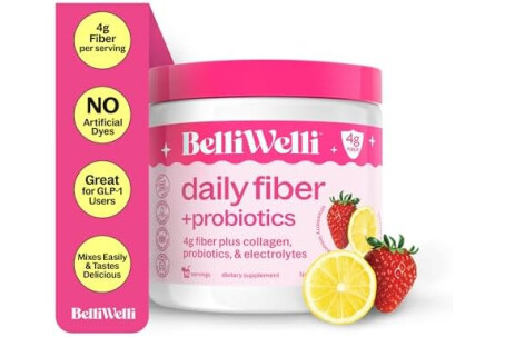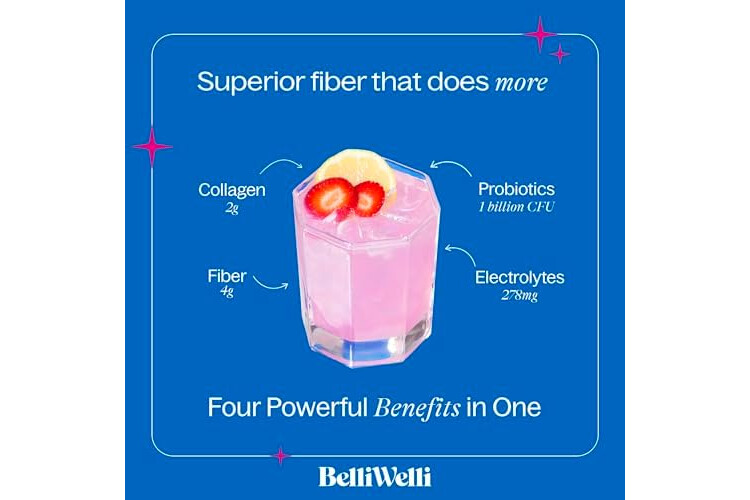 BelliWelli Fiber Supplement for Women & Men Premium Daily Fiber Powder from Organic Acacia with Added Collagen Electrolytes & Probiotics No Bloa Constipation & Gut Health Support (Strawberry Lemonade)
