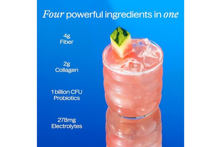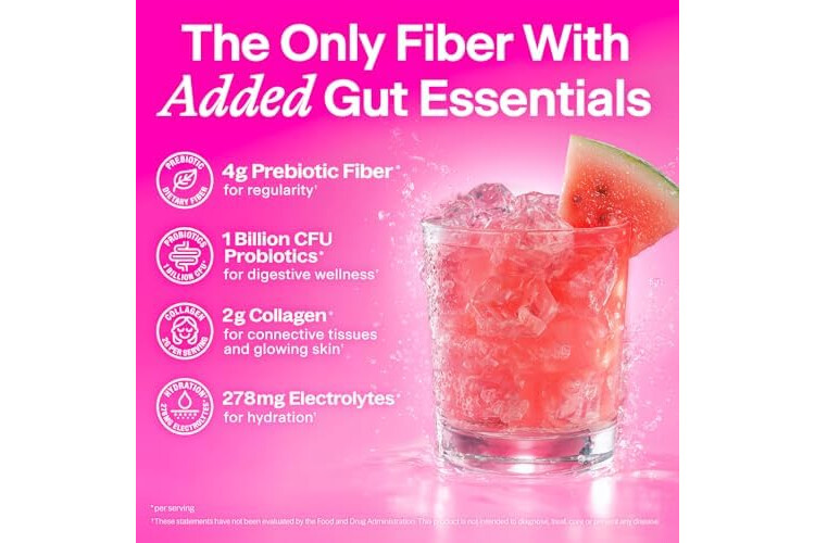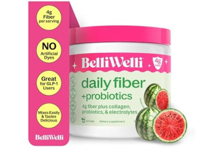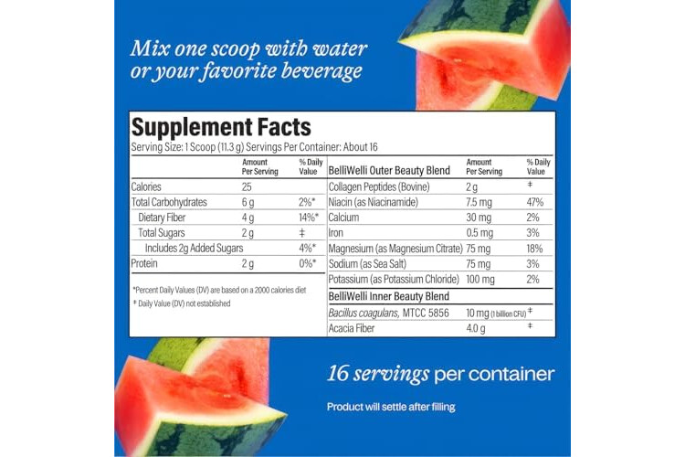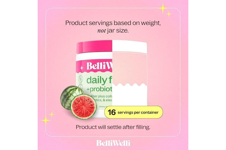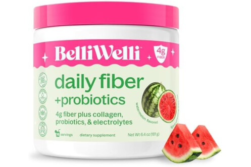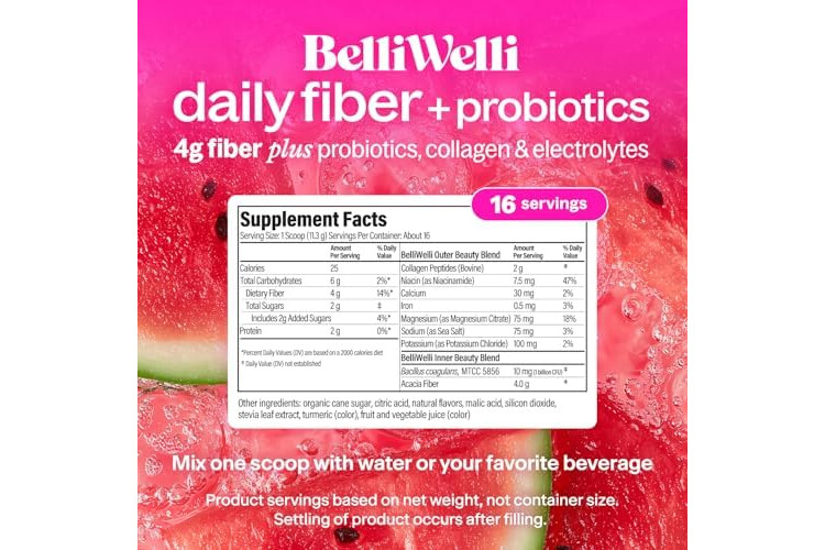Belli Welli Fiber Supplement for Women & Men – Premium Daily Fiber Powder from Organic Acacia with Added Collagen, Electrolytes & Probiotics – No Bloat, Constipation & Gut Health Support (Watermelon)