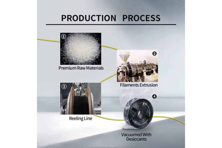 【Mature Production Process】--- Advanced production lines produced vacuum sealed and packed with desiccant for maximum moisture protection, keeping them dry and preventing dust and foreign particles from jamming the nozzles and producing smooth 3D model prints.
