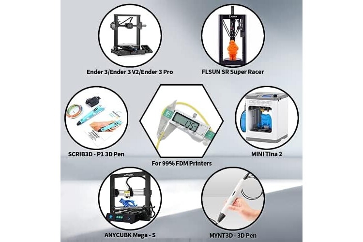 【Wide Compatibility】--- Works and harmonizes perfectly with all common 1.75mm FDM 3D printers,Spool Diameter: 8" - Spool Width: 2.5" - Spool Hub Hole Diameter: 2.20"