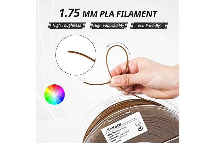1.75mm High Compatibility & Accuracy : Wood PLA Printer Filament meets Higher Standard diameter tolerance of +/-0.02mm, Strict tolerances guarantee these PLA filaments of 1.75 mm making it much smoother and stable