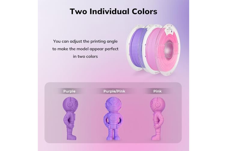 Eye-catching Matte PLA: Matte Pink and Purple combination of magic 1.75mm PLA filament, make the two sides of your print appear in different colors. Without polishing, you can get a gorgeous 3D printing surface, make your 3d prints stand out from the crowd