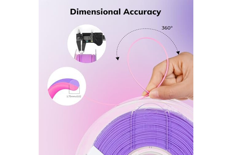 Precision Printing: Achieve flawless prints with matte dual color PLA filament, engineered for ease of use and exceptional precision. With a product diameter of 1.75 mm and precision tolerance of +/- 0.02 mm, smooth and consistent results