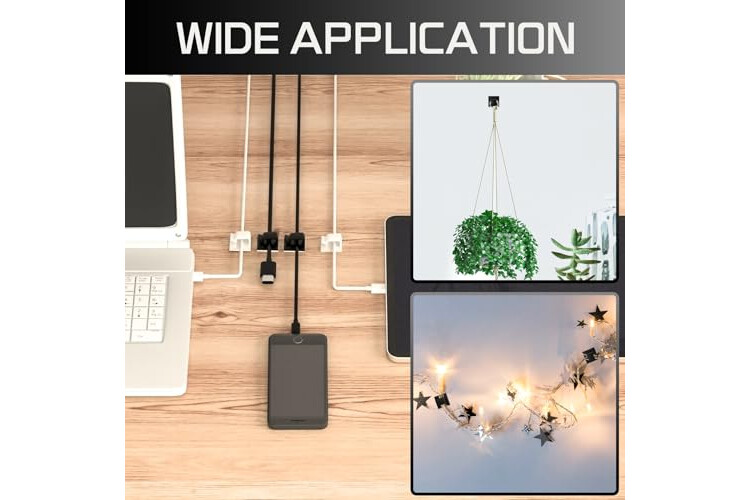 Multi-Purpose Wire Clips: Our self-adhesive cable clips are not only for cable management, but also help you decorate your Halloween, Thanksgiving and Christmas lights easily. They are used to store and manage different types of cables: Ethernet cable, USB cable, HDMI cable, TV cable, etc. Widely used in home, garden, garage and office.