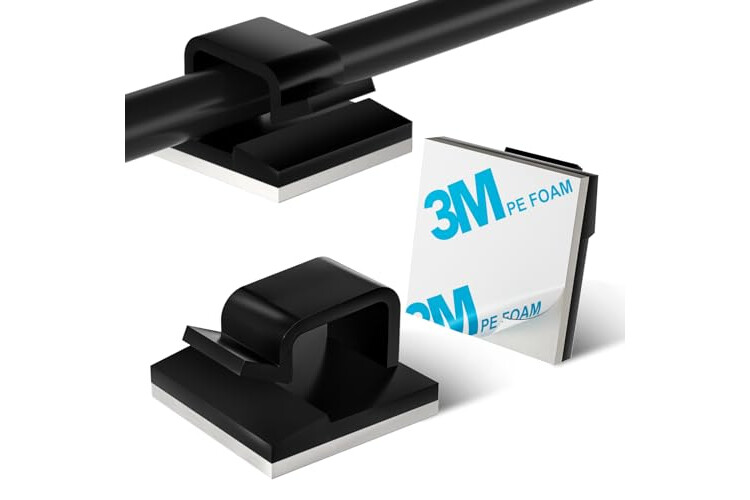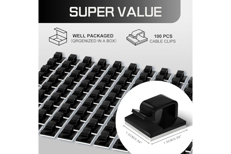 Adhesive Cable Clips: Made of high-quality PA66 material and strong adhesive, strong and durable. No drilling is required for use, no residue is left behind, and the surface will not be damaged. Set contains 100 cable clips, cable clips size: 15x15x9mm.