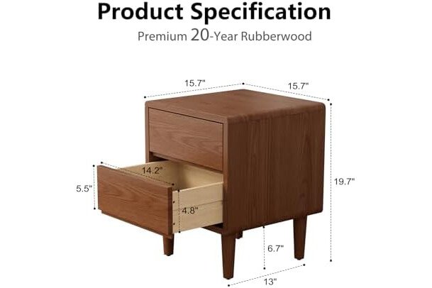 🪵【Built to Last: Premium SOLID WOOD】🪵: Experience unmatched strength and longevity with our mid century nightstand crafted from 100% FAS-Grade Rubberwood SOLID WOOD. Enjoy rock-solid stability and heirloom-quality durability that stands the test of time