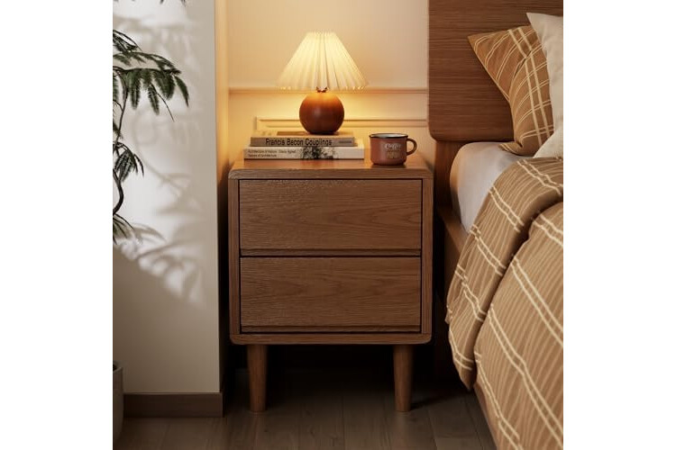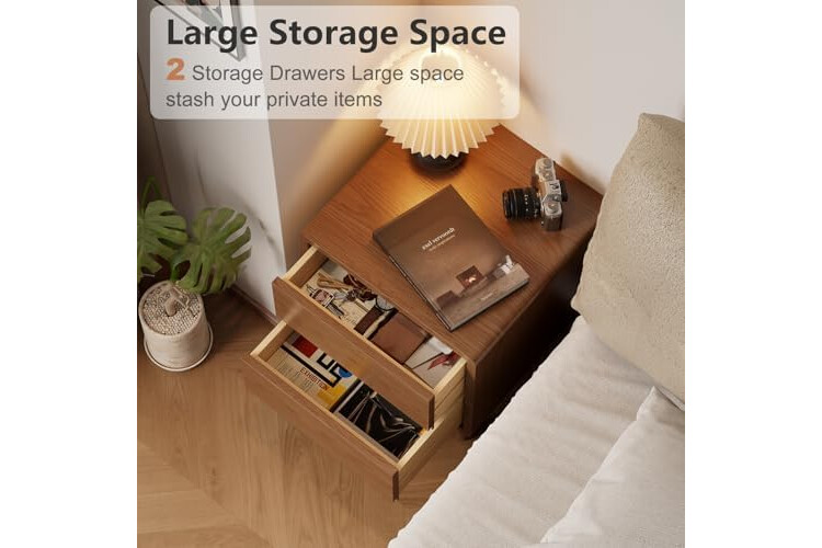 ✨【Unique & Sophisticated Design】✨: Transform your bedroom with this distinctive walnut night stand. Featuring expertly hand-polished curved edges and a harmonious blend of square and circular elements, the night stands radiates a refined, modern elegance that instantly elevates your space