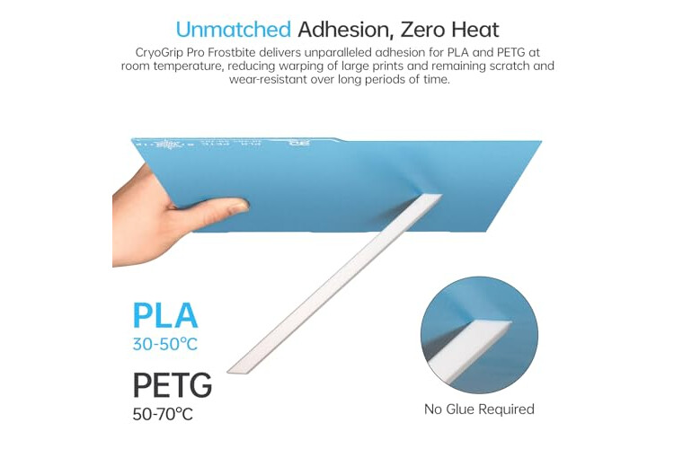 【Unmatched Adhesion, Zero Heat】BIQU Frostbite cold print build plate is compatible with PLA at a low temperature range of only 30-50℃, and PETG at only 50-70℃. It highly surpasses traditional PEI steel spring sheets as per prints adsorption in cool printing with PLA and PETG. Its superior first-layer adhesion helps you to keep away from glue, edge warping and print falling off.