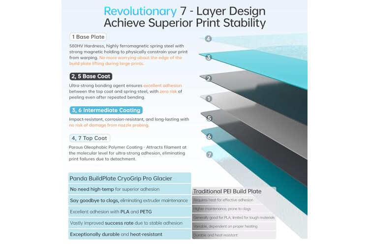 Unparalleled Adhesion: CryoGrip Pro Glacier Build Plate has unparalleled first layer adhesion. The substrate has high magnetism, strong adsorption and fixation, and limits stress warping, so there is no need to worry about printing failure caused by the first layer falling off, greatly improving the printing success rate. Designed to safely protect your printing at low temperature. Enjoy perfect printing effect without warping