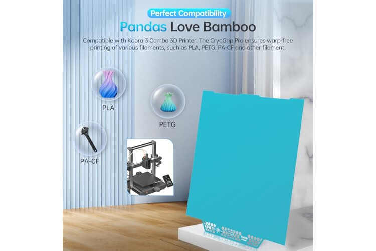 Perfect Compatibility: CryoGrip Pro Glacier Build Plate is suitable for 3D printers with a platform size of 250x250mm, for Kobra 3 Combo 3D Printer. Compatible with PLA, PETG, ABS, PA and other filament. (NOTE: Glacier printing adhesion not as good as Frostbite with PLA and PETG)