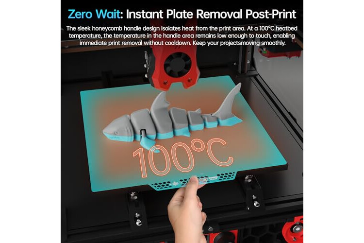 Hollow Out Handle Design: CryoGrip Pro Glacier Build Plate only heats up slightly in the hot bed at 100℃, protecting both hands. After printing is completed, the build plate can be immediately removed and replaced with a new one to continue printing, without waiting for the build plate to cool down before ...