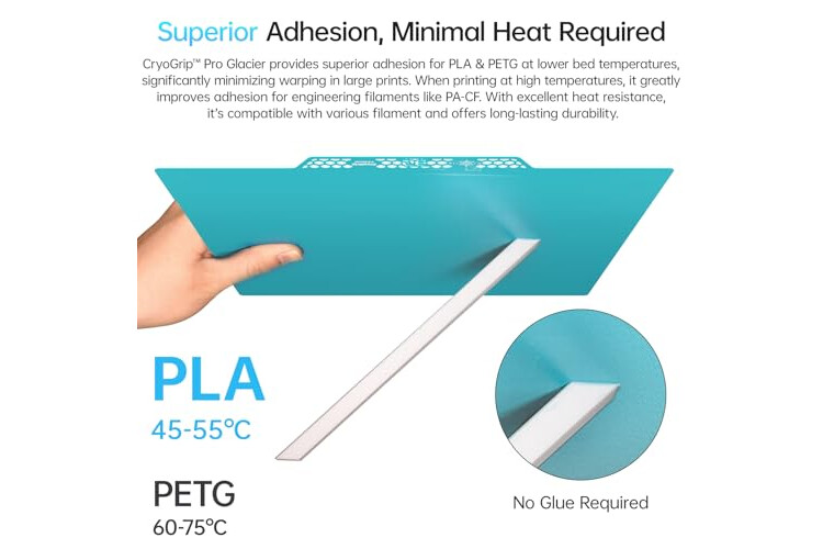 Unparalleled Adhesion: CryoGrip Pro Glacier Build Plate has unparalleled first layer adhesion. The substrate has high magnetism, strong adsorption and fixation, and limits stress warping, so there is no need to worry about printing failure caused by the first layer falling off, greatly improving the printing success rate. Designed to safely protect your printing at low temperature. Enjoy perfect printing effect without warping