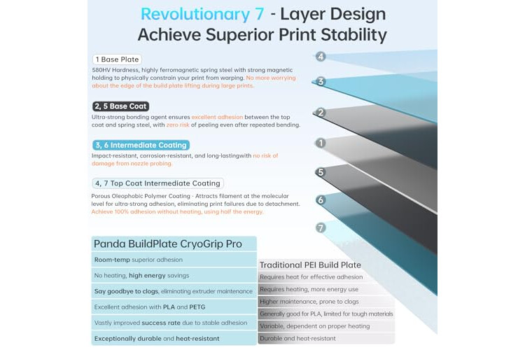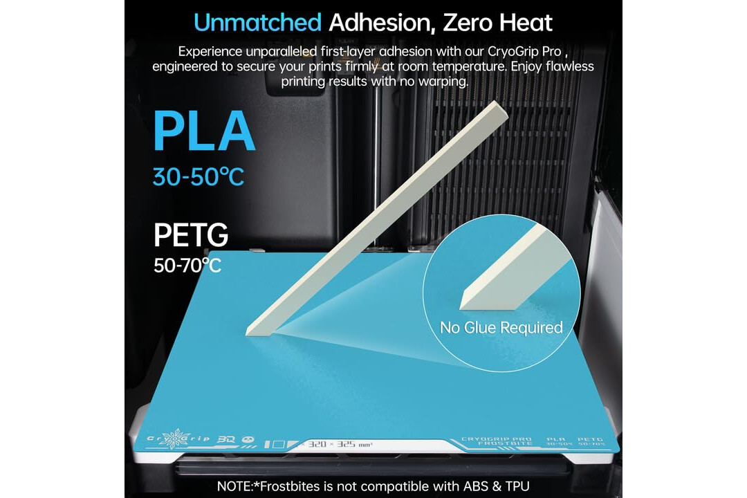 Unparalleled Adhesion and Zero Heat Generation: CryoGrip Pro Frostbite Panda Build Plate has unparalleled first layer adhesion. The substrate has high magnetism, strong adsorption and fixation, and limits stress warping, so there is no need to worry about printing failure caused by the first layer falling off, greatly improving the printing success rate. Designed to safely protect your printing at room temperature. Enjoy perfect printing effect without warping
