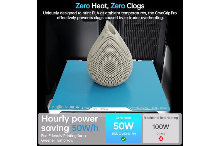 BIQU CryoGrip Pro Frostbite for Bambu-Lab H2D/H2S 3D Printer 355x346mm Cold Build Plate Room Temperature Print Double Sided Upgrade Spring Steel Sheet Removable Surface Platform