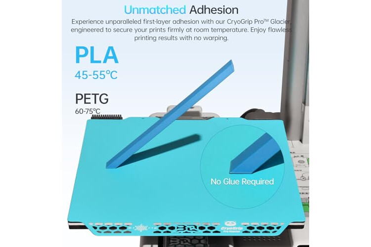 Unparalleled Adhesion: CryoGrip Pro Glacier Build plate has unparalleled first layer adhesion. The substrate has high magnetism, strong adsorption and fixation, and limits stress warping, so there is no need to worry about printing failure caused by the first layer falling off, greatly improving the printing success rate. Designed to safely protect your printing at low temperature. Enjoy perfect printing effect without warping
