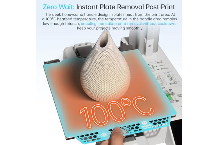 Hollow Out Handle Design: The CryoGrip Pro Glacier Build plate only heats up slightly in the hot bed at 100℃, protecting both hands. After printing is completed, the build plate can be immediately removed and replaced with a new one to continue printing, without waiting for the build plate to cool dow...