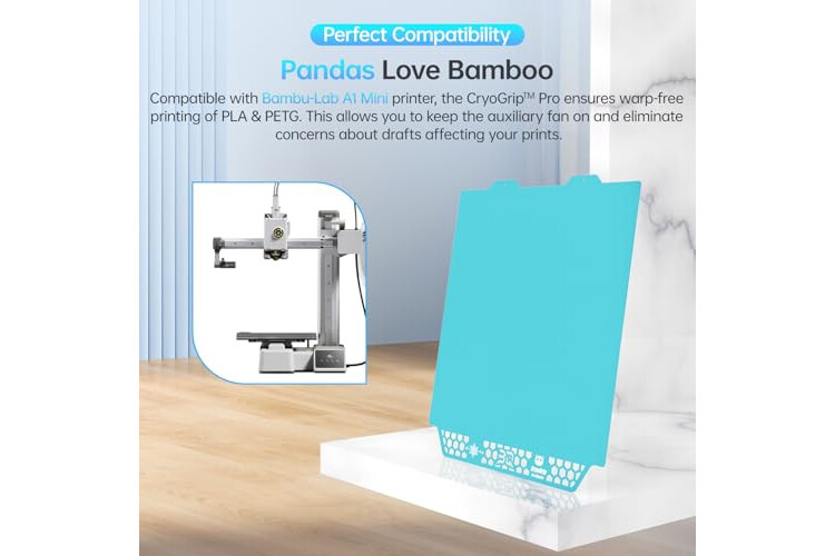 Perfect Compatibility: CryoGrip Pro Glacier Build plate is suitable for 3D printers with a platform size of 184x184mm, for Bambu-Lab A1 Mini printer. Compatible with PLA, PETG, ABS, PA and other filament. (NOTE: Glacier printing adhesion not as good as Frostbite with PLA and PETG)