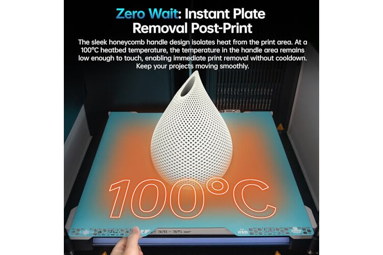 Hollow Out Handle Design: CryoGrip Pro Glacier Build Plate only heats up slightly in the hot bed at 100℃, protecting both hands. After printing is completed, the build plate can be immediately removed and replaced with a new one to continue printing, without waiting for the build pl...