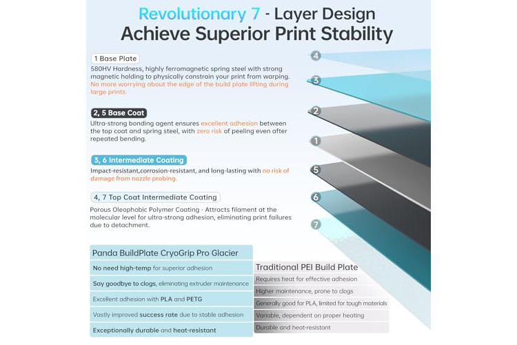 Unparalleled Adhesion: CryoGrip Pro Glacier Build Plate has unparalleled first layer adhesion. The substrate has high magnetism, strong adsorption and fixation, and limits stress warping, so there is no need to worry about printing failure caused by the first layer falling off, greatly improving the printing success rate. Designed to safely protect your printing at low temperature. Enjoy perfect printing effect without warping
